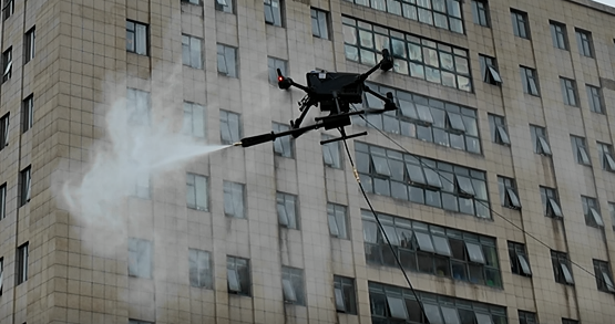 (二)现场协同清洗阶段 传统设备作业:对于建筑中层平面幕墙区域,采用南京飞鹰M400传统清洗设备进行高效清洗,按照 “初步冲洗 -药剂喷洒-深度清洗-二次冲洗” 流程操作,发挥其作业幅宽广、单小时清洗面积大的优势。 系留无人机作业:对于高层、建筑顶部造型等传统设备难以触及的区域,启用系留无人机进行长续航专项清洗。操作人员通过地面控制台,根据预设航线操控无人机,针对顽固污渍区域,可手动调整喷头角度与压力,配合摄像头实时观察清洗效果,确保清洁彻底。
