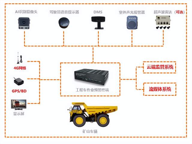 2. 工作原理与功能实现 系统通过 “数据采集 — 算法处理 — 预警提示” 的流程,全程守护矿车作业安全: 数据采集:在矿车的前、后、左、右四个方位各安装一台 AI 摄像头,实时捕捉车辆周围的人员、障碍物等动态数据。 画面呈现:采集到的数据传输至工程车预警终端后,经主机算法处理,最终在显示屏上生成 360 度全景画面与作业范围示意图,让驾驶员直观掌握周边环境。 智能预警:当有人员闯入车辆周围设定的危险区域时,系统启动三重预警机制:视觉预警:AI 摄像头自动捕捉闯入人员,并在显示屏上放大显示,突出提醒驾驶员。语音提示:驾驶员语音提示器精准播报闯入人员方位,例如 “左侧有人,请注意!”“左前方有人,请注意!”,帮助驾驶员快速定位风险。声光警示:车外声光报警器同步播报 “作业区域危险,请远离”,提醒周边人员及时撤离。 雷达辅助(选配):若加装超声波雷达,其预警信号会叠加到视频画面上,进一步强化风险提示,双重保障避免事故。 三、系统应用价值:助力矿山安全高效发展 佳兴伟诚矿车360 度全景环视驾驶辅助系统凭借先进的AI技术、全面的监测功能与可靠的预警机制,为矿山企业提供了全方位的安全保障。它有效规避了因盲区导致的人员违规闯入事故,同时提升了矿车作业效率,最终助力矿山企业实现安全、高效、可持续的发展目标。 |