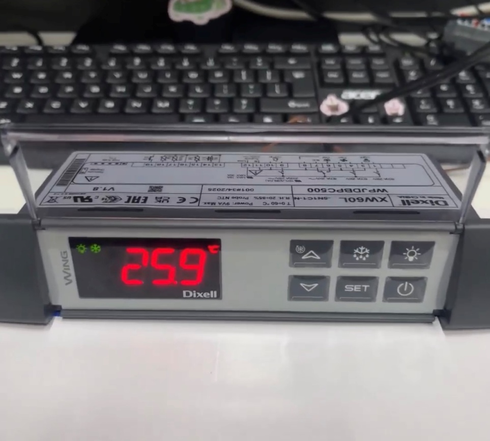 由于列车运行区间跨度大,沿线地域温差显著(-20℃至38℃),且面临高速运行时的持续振动、电力供应波动等复杂运营环境,传统温控设备在精度、抗干扰能力和能耗方面均存在不足,难以满足长距离、高稳定性运行的需求。 为此,项目将依托合作双方的技术与运营优势,共同攻克这一运营痛点,致力于提升列车冷链储运系统的可靠性与能效,保障餐食品质,从而全面提升旅客的出行体验。 餐车制冷温控解决方案介绍 针对轨道交通餐车“动态运行、环境多变、需求稳定”的核心特点,解决方案采用“专用谷轮温控器+智能联动系统”模式,构建“精准控温-状态监测-智能调节”全流程保障体系。广州康盛提供的两款谷轮温控器经双方联合优化,可精准适配不同存储设备需求:XW60L-5N1C1N和XW20L-5N0C1-N专注主冷藏区高精度温控,保障核心食材存储环境稳定;适配辅助存储区域能耗优化控制,兼顾温控效果与节能需求, 实时反馈状态并动态调节参数。 谷轮温控器应用原理简介 针对列车餐车严苛的运行环境,广州市康盛制冷设备有限公司推出两款高可靠温控器。XW60L-5N1C1N作为主冷藏区核心,以±0.7℃高精度与IP65防护等级,确保食材储存环境稳定,抵御振动、灰尘与水汽。
