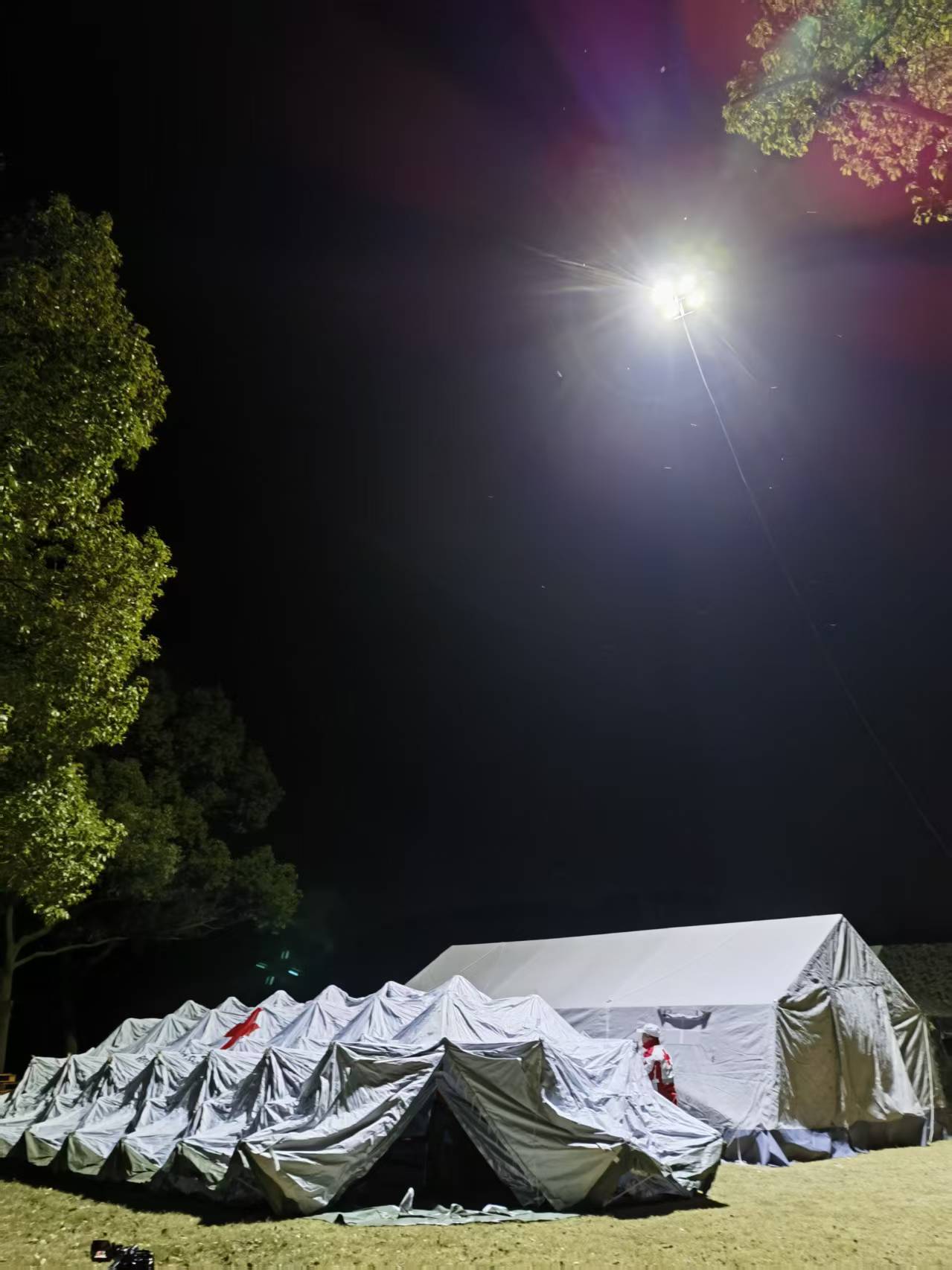 据了解,此次红十字会应急演练聚焦夜间复杂环境下的救援协同能力,涵盖了废墟搜救、伤员急救、物资转运等多个高难度科目。夜间光线昏暗、视野受限,不仅给救援人员的操作带来极大挑战,也对现场照明设备的性能提出了严苛要求。传统照明设备往往存在覆盖范围小、续航时间短、部署灵活度不足等短板,难以满足大规模、长时间应急演练的照明需求。在此背景下,M350系留照明无人机凭借其独特的技术优势,成为此次演练照明保障的核心装备。 M350系留照明无人机采用先进的系留供电技术,可通过地面供电系统实现长时间不间断悬停照明,彻底摆脱了传统无人机依赖电池供电、续航受限的痛点。演练现场,M350系留照明无人机在接到指令后,迅速完成部署升空,精准悬停至指定区域,瞬间开启高强度照明。其搭载的高亮度泛光照明灯,照明覆盖范围广、光线均匀柔和,能够清晰照亮演练区域的每一个角落,为救援人员搭建起一片“光明战场”。无论是废墟中的精细搜救,还是医疗帐篷内的紧急救治,充足的光线都让各项操作得以顺利推进,有效提升了演练的实战性与高效性。