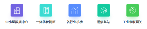 三、适用场景 - 中小型数据中心 - 一体化智能柜 - 各行业机房 - 通信基站 - 工业物联网关