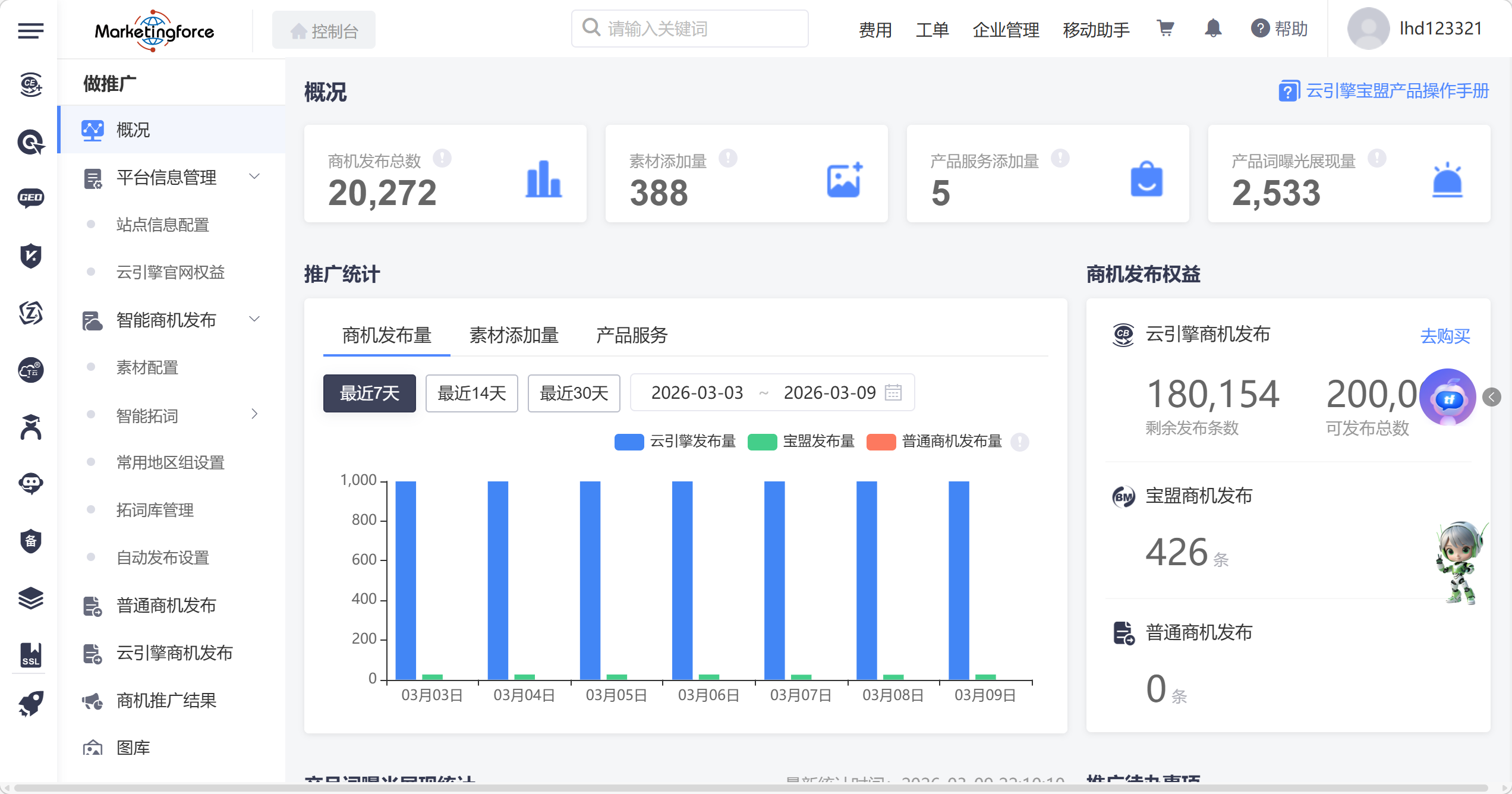 其中,榕臻科技的云引擎宝盟系统,可整合 10 家高权重 B2B 平台与 200 家行业平台资源,实现商情信息的自动化批量发布,无需人工持续操作,即可实现企业产品信息、品牌信息在多平台的覆盖,提升企业信息在搜索引擎中的曝光范围;同时可通过大数据智能拓词功能,挖掘符合采购商搜索习惯的关键词,优化商情内容,让意向客户在搜索相关产品时,可快速找到企业的相关信息。