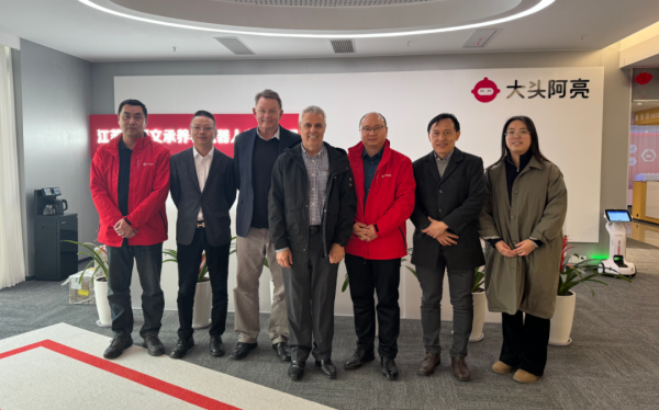 01 双向奔赴:从两次考察到深度互信 澳大利亚DTAL ROBOTICS总经理Umit先生对养老机器人市场关注已久,一直在寻找功能实用、情感交互出色且性价比高的产品。经过对全球多款机器人的深入调研,他将目光锁定在我司“大头阿亮”上。为此,Umit专程两次到访我司江苏总部,实地考察研发中心及已落地应用案例。 我司自主研发的第五代大头阿亮养老机器人凭借成熟的软硬件系统、人性化交互设计和稳定的产品性能,赢得了Umit的高度认可。他表示:“大头阿亮不仅技术好,更在适老化细节和情感陪伴上做的好,这正是澳洲家庭和养老机构急需的解决方案。”双方的深入互信与高度契合,为本次合作奠定了坚实基础。